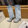 Foreign Trade Europe and the United States Pointed Fashion Single Shoes Women's Stiletto Denim Western Style High Heels Personalized Foot Fashion Sh