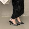 2025 New Summer Pointed Small Fragrant Wind Pointed Thin Heel High Heels French High Heel Bag Head Empty Sandals Women