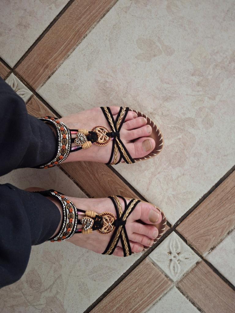 The sandals are beautiful, comfortable. I took a size larger, but could have taken two sizes larger. They will only fit narrow feet!