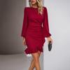 Autumn and Winter New Women's Clothing Temperament Bubble Sleeve Clean Color Dress