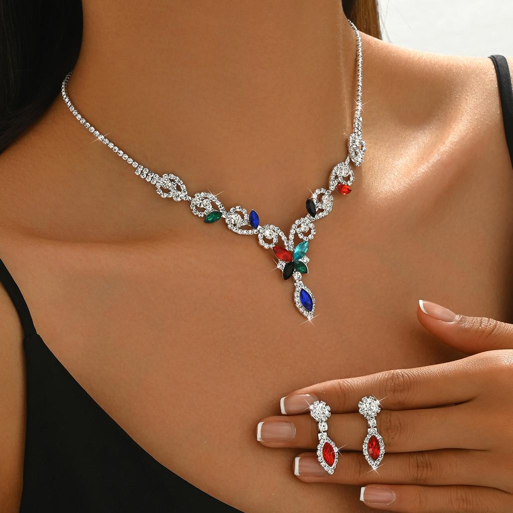 Winter Crystal Butterfly Necklace Earrings Set Jewelry Luxury Wedding