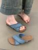 Famous Style Retro Woven One-word Drag Girl Summer 2025 New Outer Wear Seaside Vacation Sexy Open-toed Beach Shoes