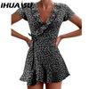 IHUASU Summer Women A-Line Floral Print Dress Cute Elegant V-Neck Floral Ruffle Short Dress for Lady Chic Flower Mini Dress
