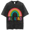 Be Kind Rainbow Print Women's T-Shirt Oversized Loose Wash Short Sleeve Unisex Fashion Design Casual Niche Top