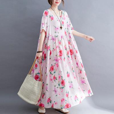 Summer Dress Oversize Women Clothing Sundress Floral Print Lady Long Dress Prairie Chic Holiday Loose Casual Cotton