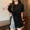 Experience ultimate comfort and style with this women's loose-fit cotton t-shirt, perfect for summer. Made from luxurious 200g 40s double yarn pure cotton, it offers a soft and breathable feel. The shirt features a round neckline and short sleeves, with a solid pattern that provides a classic look. The irregular slit adds a unique touch, while the slimming design ensures a flattering fit for any body type. Ideal for casual outings or relaxing at home, this t-shirt combines elegance and ease effortlessly.