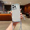 Diamond Glitter Crossbody Necklace Lanyard Case For iPhone 16 16E 11 12 13 14 15 Pro Max Plus Bling Transparent Soft Cover