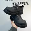 New Men's Black Casual Leather Shoes Big Head Mickey Derby Niche Low-top Thick-soled Heightening Men's Shoes 3208-A