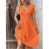 Summer Women's Dress Lace Hollow Out Slim V-Neck Elastic Waist Dress Vacation Mid Length Dresses for Daily Wear