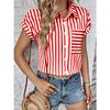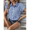 JKASHDK Women's Fashion Casual Summer Spring Stripe Print Short Sleeve POLO Neck Blouses & Shirts