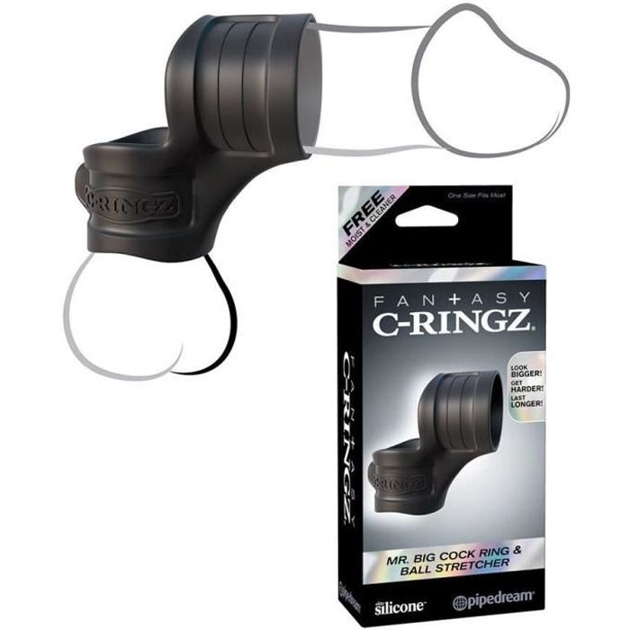 Anneau pour pénis et testicules - pipedream - mr big - noir - pour adultes - expérience intense
