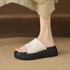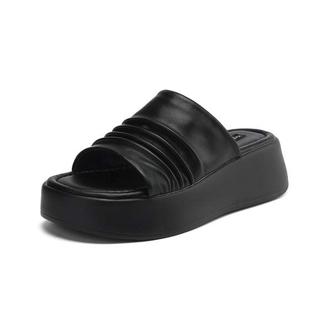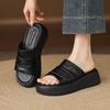 Krazing Pot Cow Skin Summer Size 40 Outside Slippers Thick Bottom Flat Platform Pleated Decoration Women Flip Flops Sandals