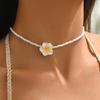 1pc Beaded Necklace for Women White Beads with Pink Floral Accent, Perfect for Daily Wear & Beach Vacations, Vacation Jewelry