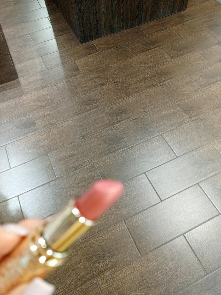 The color is slightly different due to lighting, it is more saturated, the quality is good, it moisturizes, the pearlescent shine is visible.