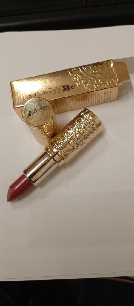 It arrived, beautiful packaging, applies softly to the lips, not dry.