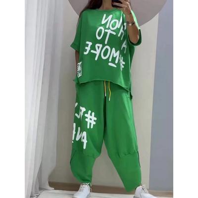 Women's Set Casual Sports Short-sleeved Round Neck Letter Printed T-shirt + Trousers