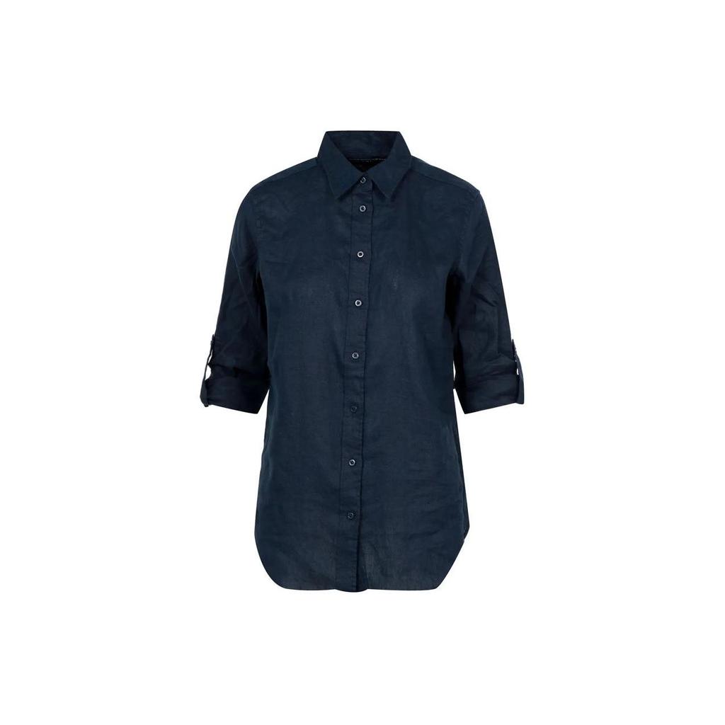Polo Ralph Lauren Solid Polo Collar Button Short Sleeve Shirt Women Shirts Navy-Blue 200782777-003