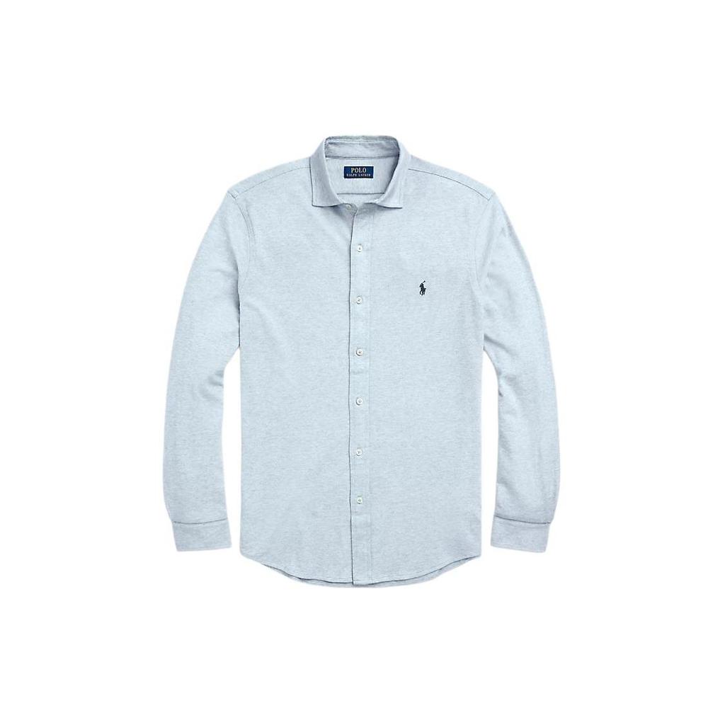 Polo Ralph Lauren Jacquard-Textured Mesh Shirt With Buttoned Collar And Logo Print Men Shirts Light-Blue 710899073-002
