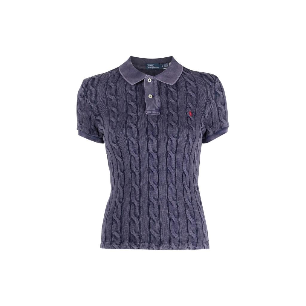 Polo Ralph Lauren SS23 Solid Logo Textured Print Short Sleeve Polo Shirt Women Tops Blue 211891579-002
