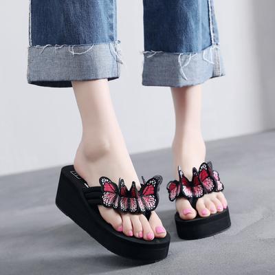 New Ladies Korean Bowknot Thick Bottom Height Increasing Sandals - Non-slip Flat Bottom Herringbone Beach Sandals for Outdoor Casual Wearing
