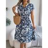 Summer V-neck Short Sleeve Floral Printed Women Dress Casual Fashion Elegant Simple A-line Party Dresses Lace-up Female Women's Clothing
