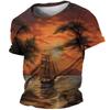 Vintage T-Shirts Guitar Sailboat 3D Printed Streetwear Men Short Sleeve T Shirt