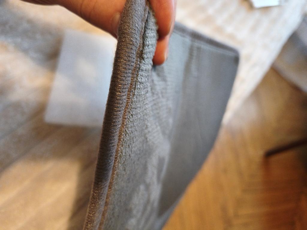 Very light, thin, slides on the floor, mouse color. Although sewn neatly.