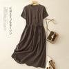 2025 Summer New Solid Color Cotton and Linen Dress Women's Mori Retro Short-sleeved Round Neck Waist Medium and Long Dress Women