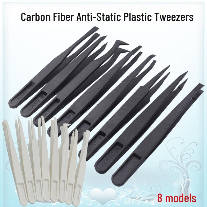 Plastic Anti-Static Tweezers Set: Pointed, Flat, Round, Black & White - Model 93303