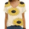 3D Printed Sunflower Women's T-shirt, V-neck Streetwear T-shirt, Harajuku T-shirt, Women's Plus-size T-shirt