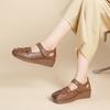 Johnature Retro Wedges Sandals Genuine Leather Breathable Shallow Soft Soled Women's Shoes