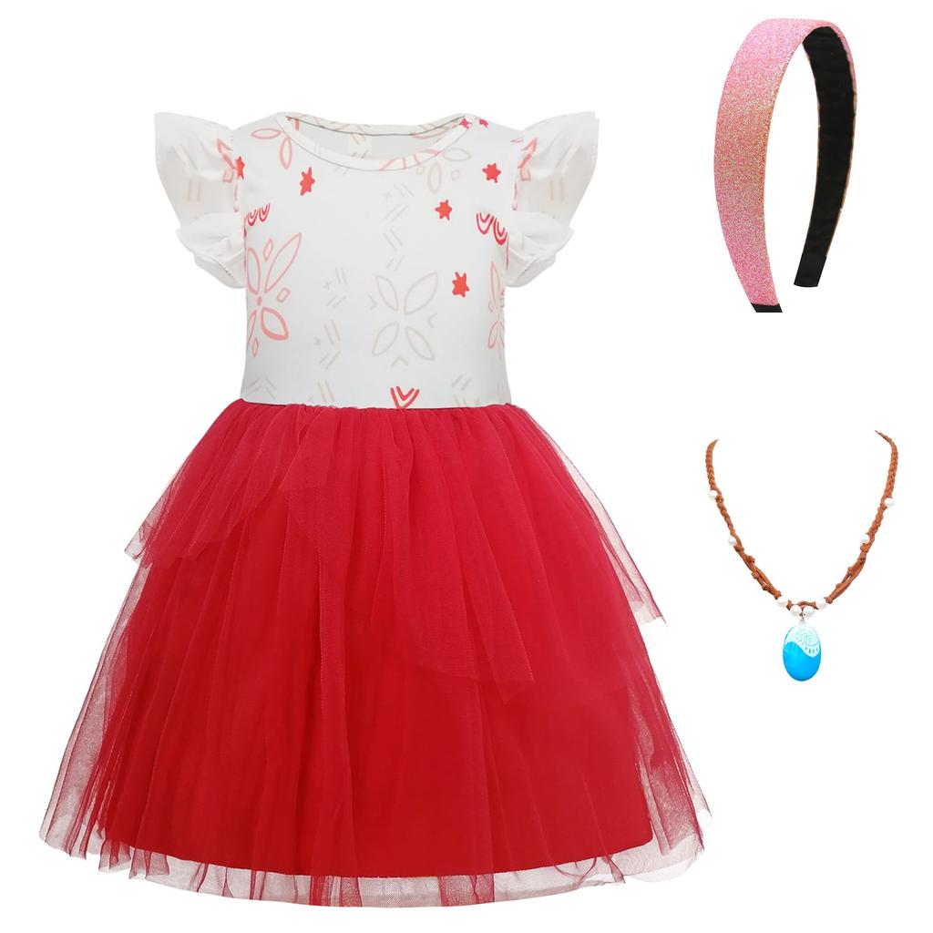 [ChicFlow] Princess Dress Kids Theater Costume Deluxe 3 Piece Girls Ocean's Wonderland Moana Costume Girls Halloween Christmas Performance Costume