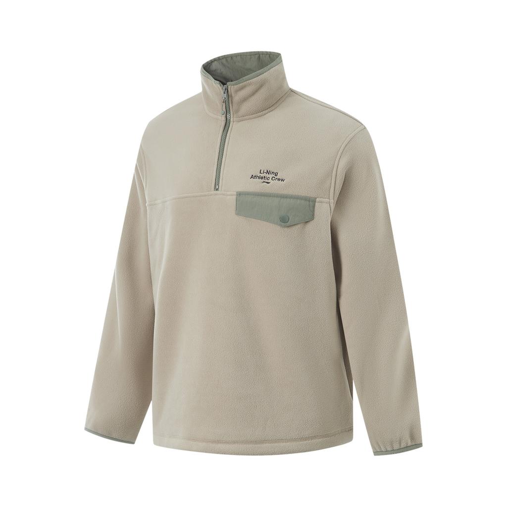 Li Ning Comfortable Breathable Fleece Warm Sweatshirt With Letter Stand Collar Men Sweatshirt Dusty-Gray AWDUA17-6
