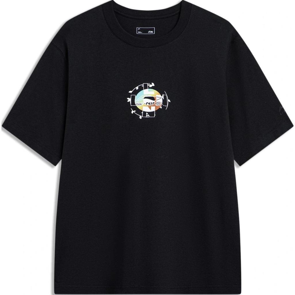 Li Ning Brand Logo Round Neck Straight Cut Short Sleeve T-Shirt Men Tops Black AHST803-2