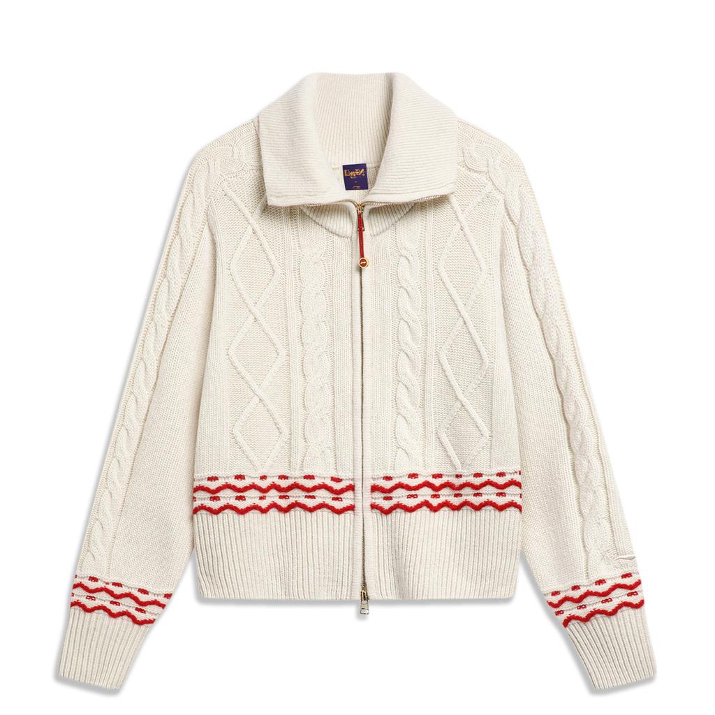 Li Ning Striped Zip Collar Long Sleeve Knit Top Women Tops Off-White AMBU014-4