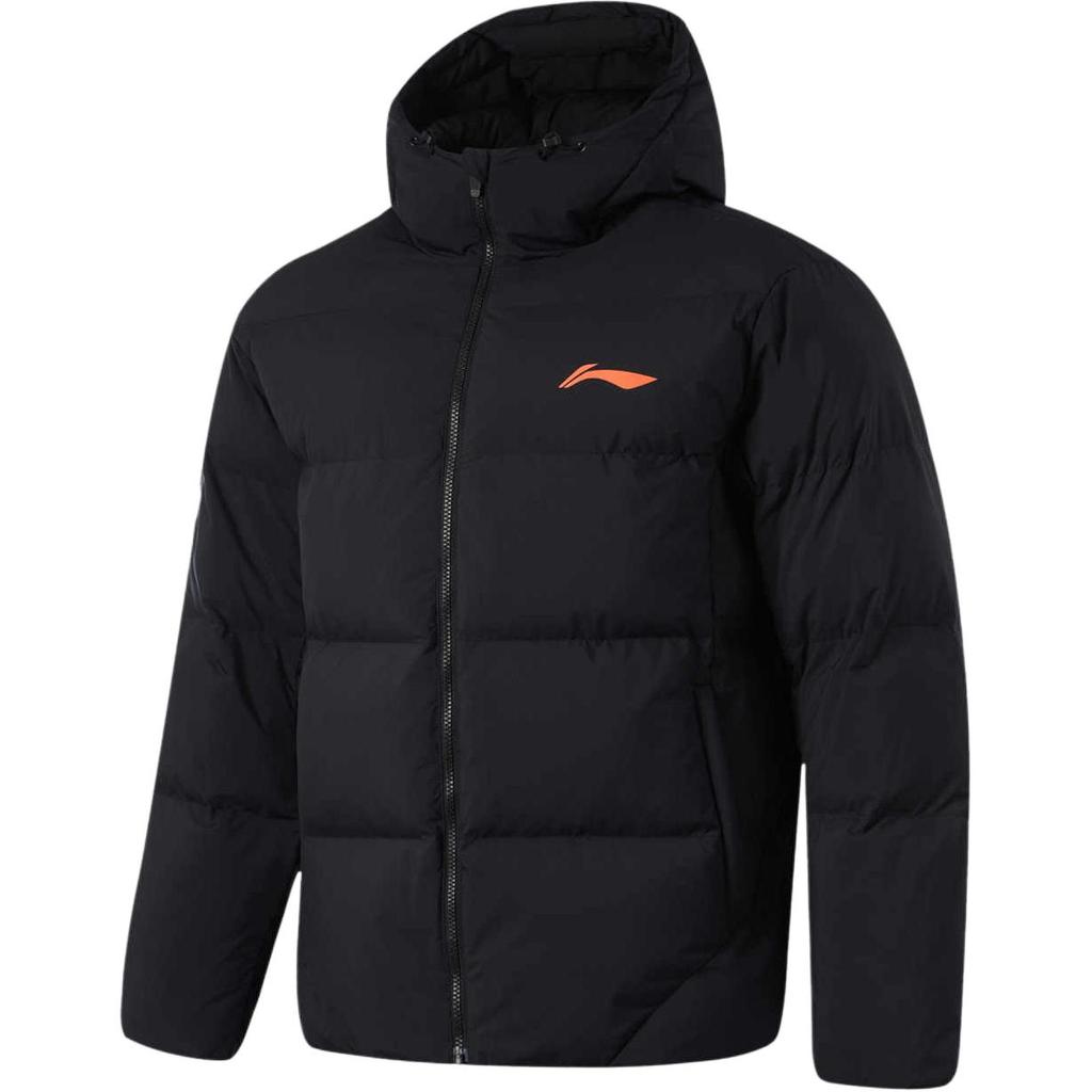 Li Ning Cba Series Logo Letter Zipper Casual Versatile Hooded Short Winter Cotton Jacket Men Jackets Black AJMU087-1