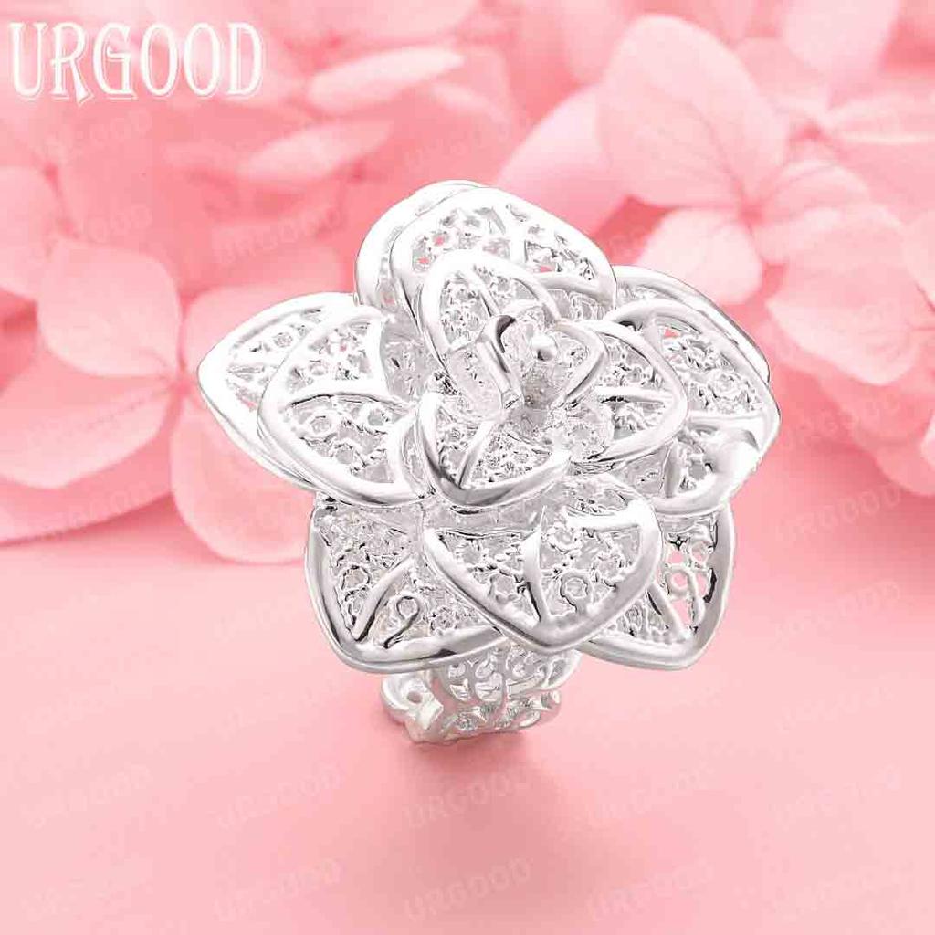 925 Sterling Silver Wedding Jewelry Flower Adjustable Ring