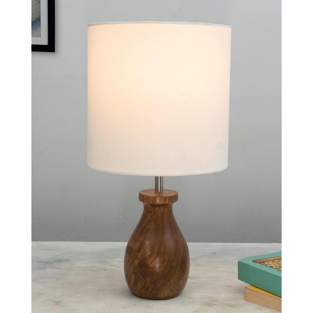 Dovel Pot, Modern LED Table Lamp with Shade, Wooden Base Modern Fabric Lampshade for Home Office Cafe Restaurant, (Pleated White)