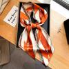 Fashion Blue Print Silk Scarf Women Soft Satin Horse Hairband Bevel Neckerchief Office Hijab Headband Foulard Bag Ribbons Gift