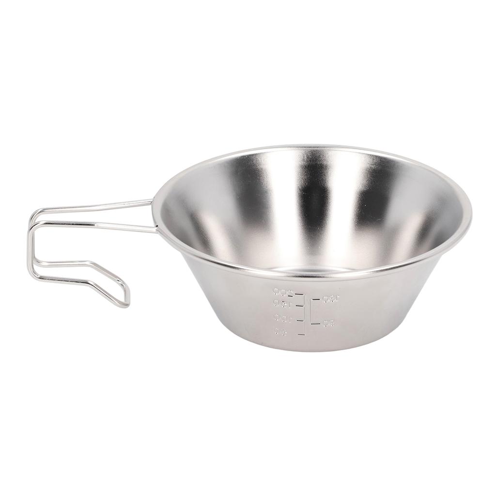 Camping Cup Bowl 304 Stainless Steel Backpacking Coffee Mug with Fixed Handle for Outdoor Picnic
