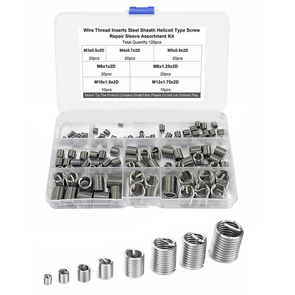 1. 120 Pcs Set: The set contains 120 pieces thread inserts, with the specifications of M3 M4 M5 M6 M8 M10 M12, could meet your different needs.