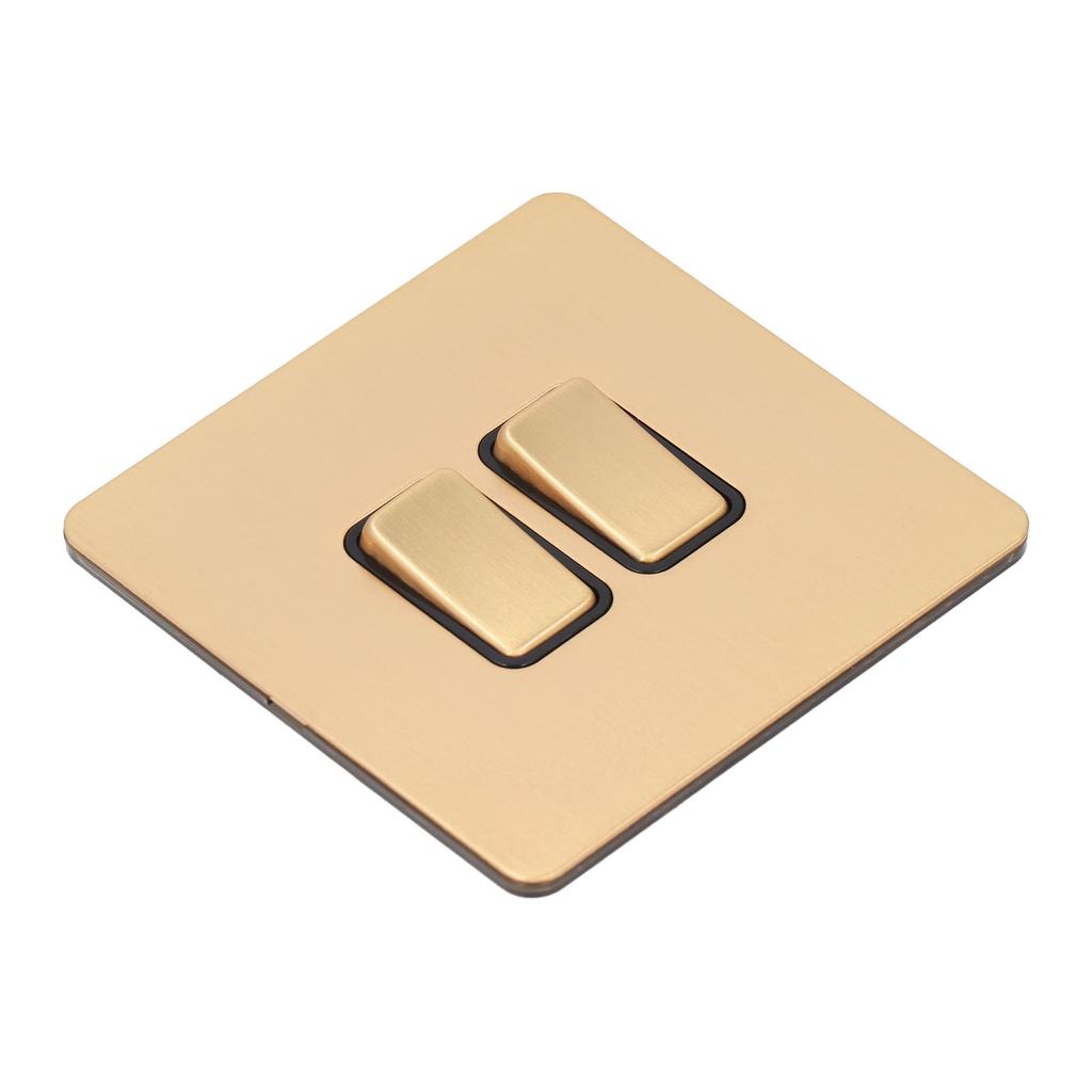 Modern Panel Switch 2 Gang PC Base Stainless Steel Gold Plate Switch for Household Appliances