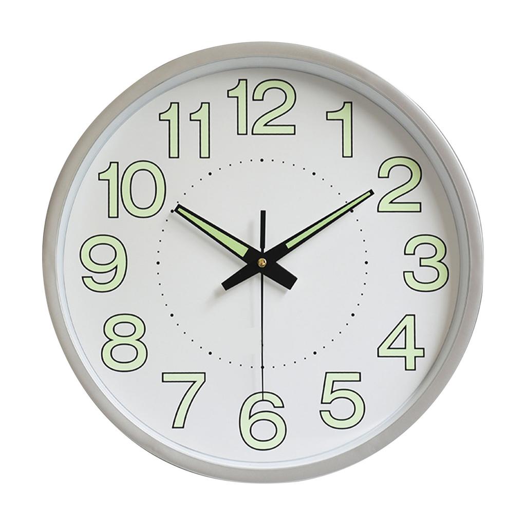 12 Inch Luminous Wall Clock Minimalist Round Quartz Clock for Bedroom Living Room Decoration Silver
