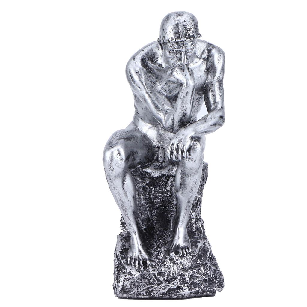 Thinker Statue European Style Resin Character Sculpture Home Office Bookshelf OrnamentSilver