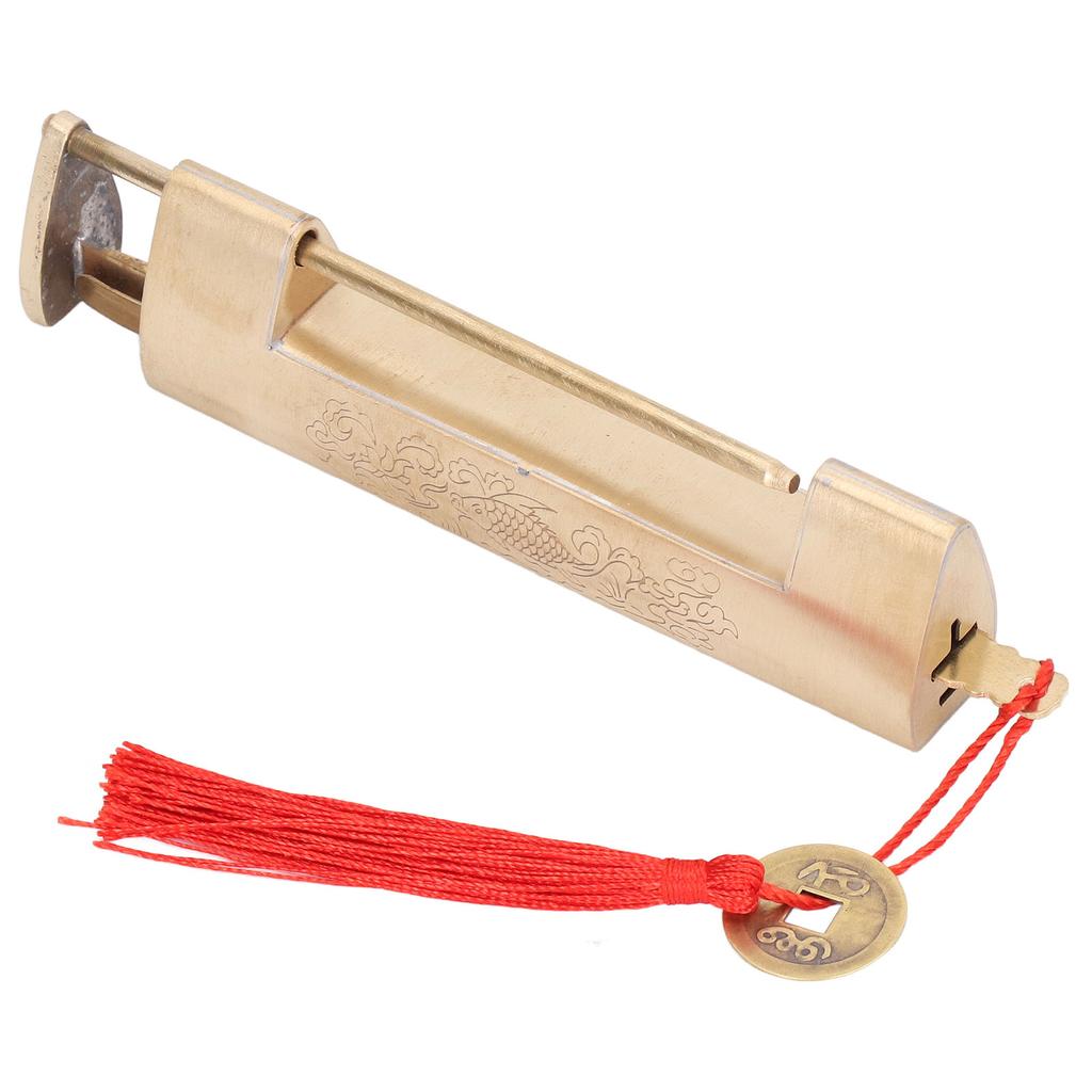 Brass Antique Padlock 8cm Spacing Delicate Chinese Old Style Jewelry Box Padlock with Key