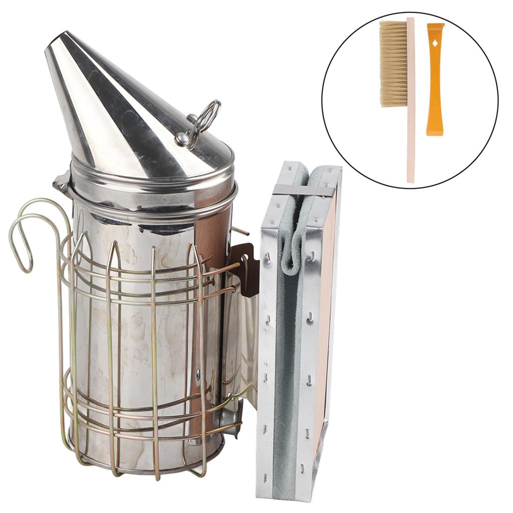 Stainless Steel Manual Bee Smoker Apiculture Beekeeping Tool with Heat Shield Protection