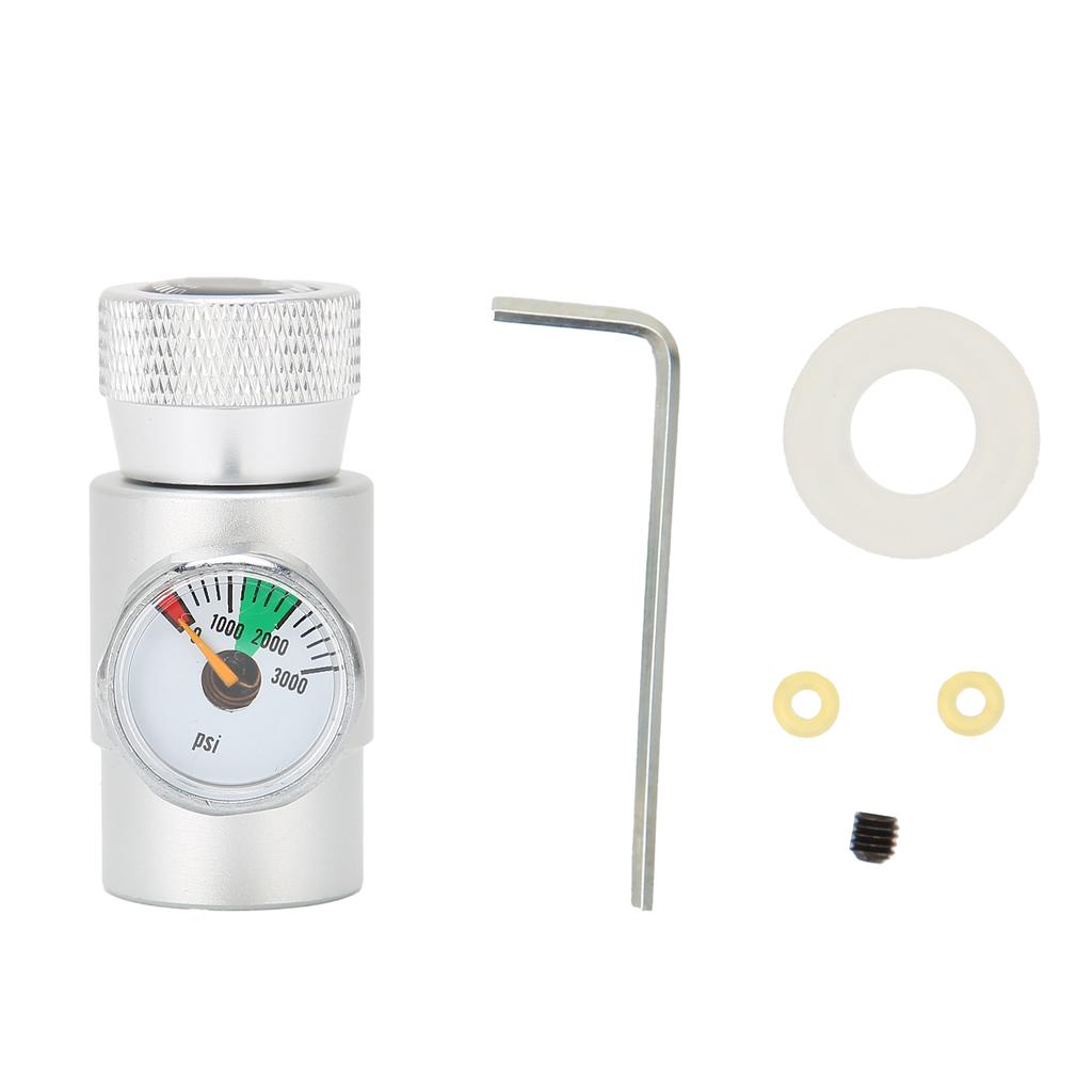 CO2 Refill Adapter Connector Gas Regulator Silver Soda ASA with 3000psi Pressure Gauge