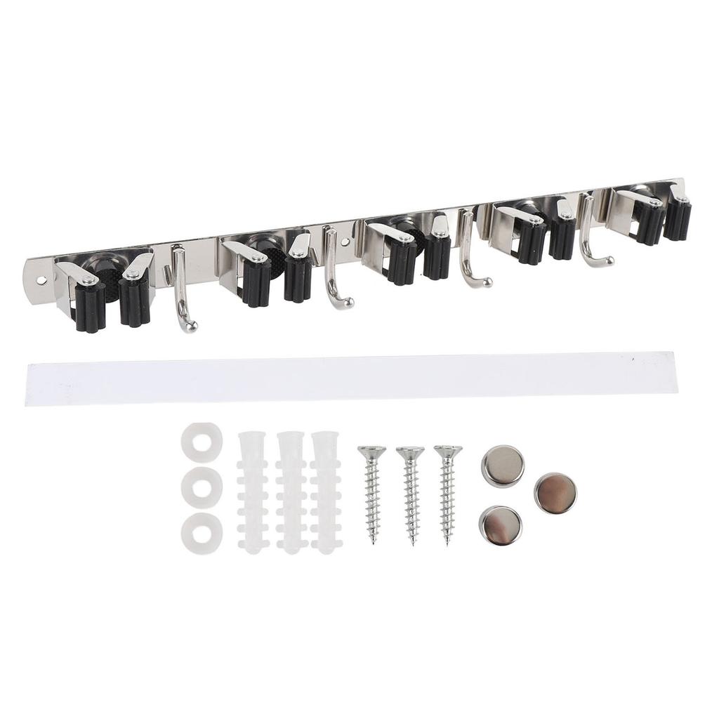 Mop and Broom Holder Wall Mount 304 Stainless Steel 5 Slots 4 Hooks Broom Hanger for Garage Laundry