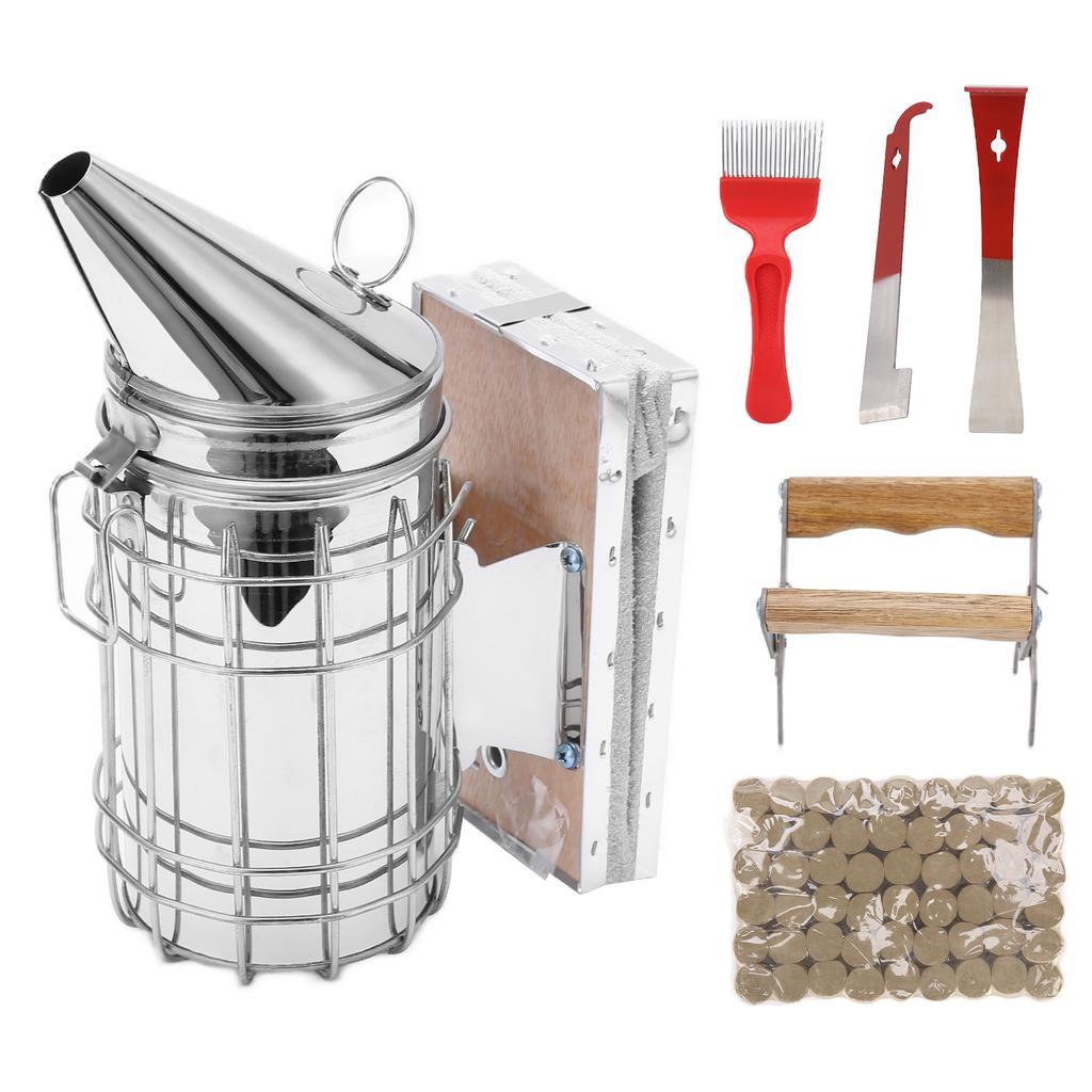 6Pcs/Set Stainless Steel Beehive Smoker Kit Bee Smoker Beekeeping Equipment for Outdoor