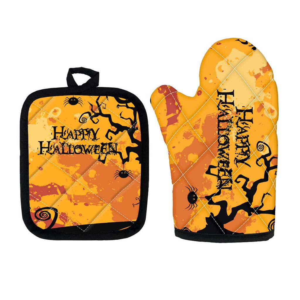 Halloween Baking Insulation Gloves Oven Microwave Oven Gloves Mat Set